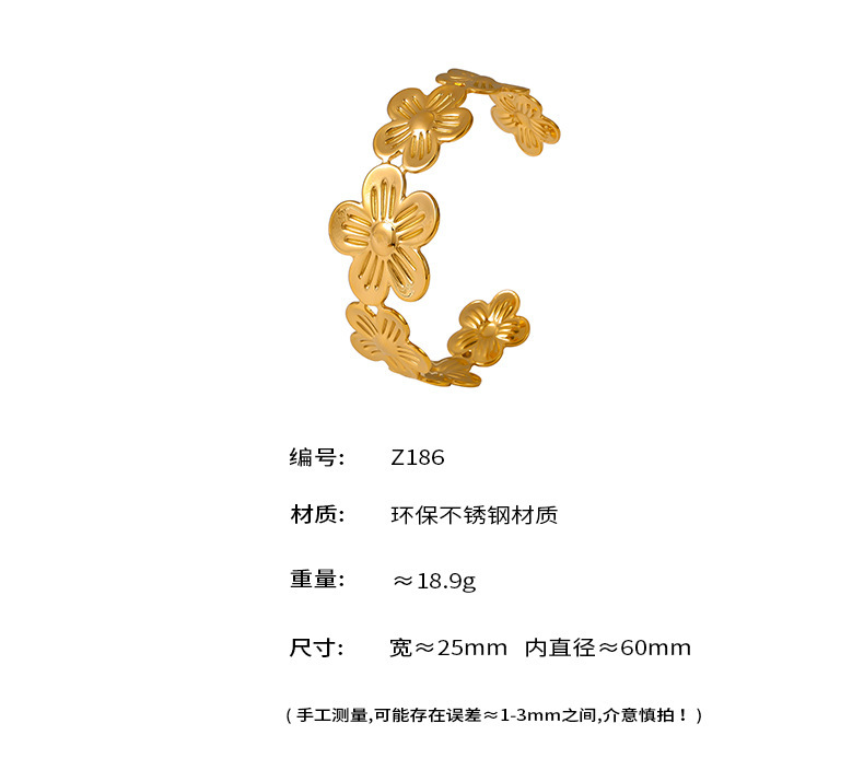 B廠【Z186】 法國五瓣花拼接開口手鐲精緻氣質不鏽鋼PVD鍍真金手鐲 24.11-2
