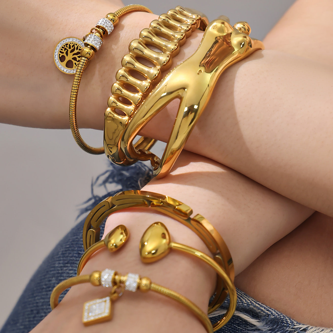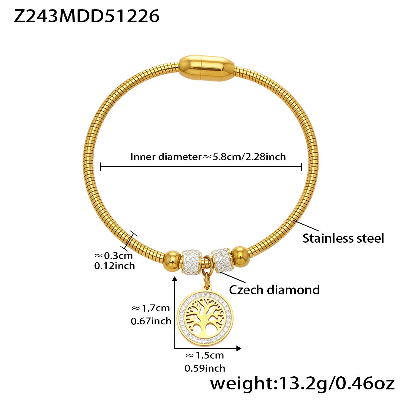 B廠【Z243】歐美時尚氣質女手環輕奢風鋯石生命樹吊墜手鐲不鏽鋼鍍18k真金 26.01-1