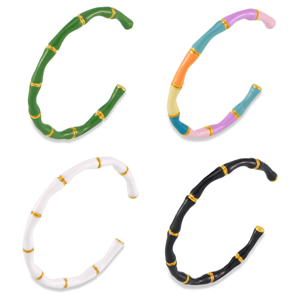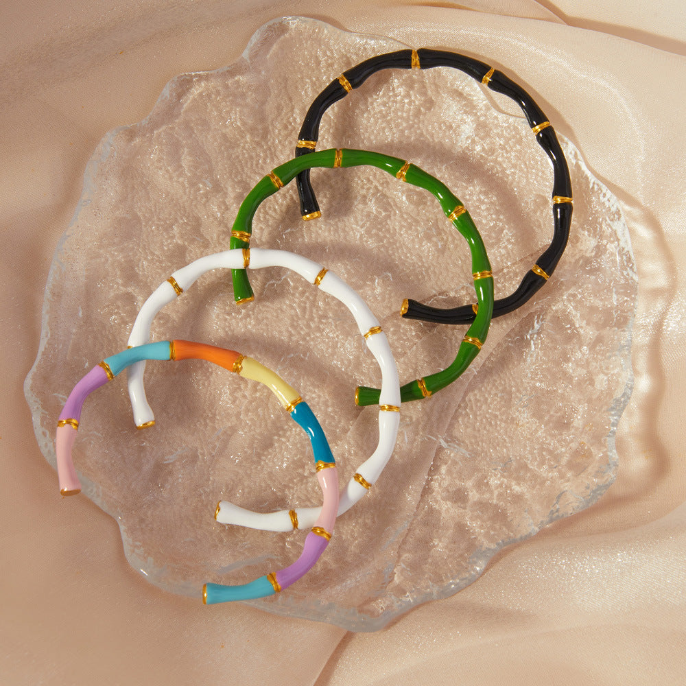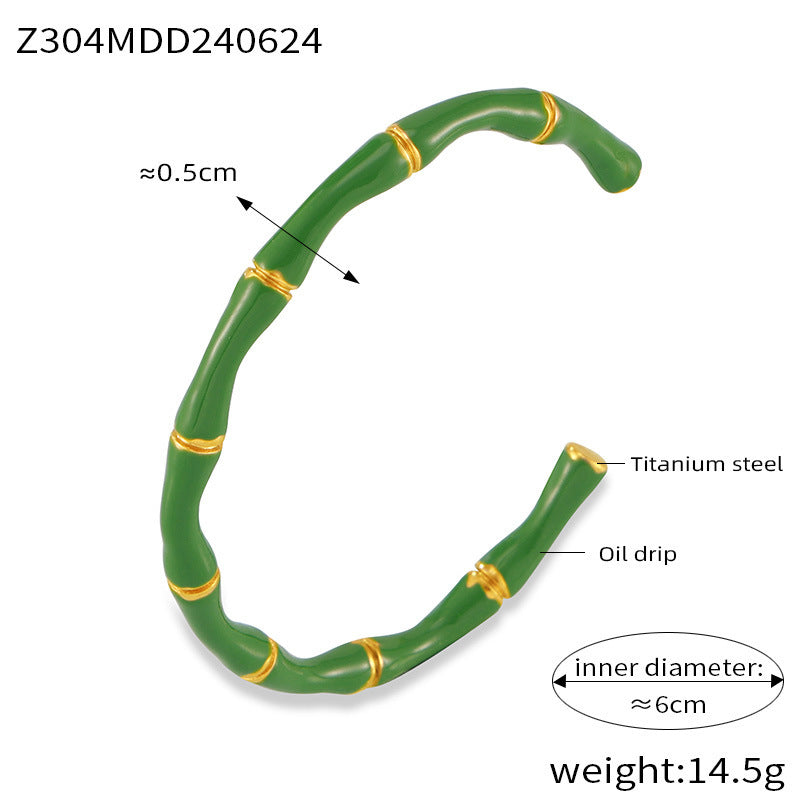B廠【Z304】歐美時尚網紅彩色滴油手鐲小竹節鈦鋼鍍金手鐲復古百搭不褪色手飾 24.06-4