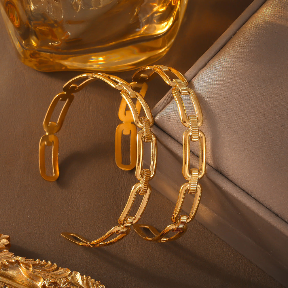B廠【Z310】跨國歐美ins經典鏈條式開口手環簡約潮流設計款鈦鋼手環真空鍍18K 24.06-4