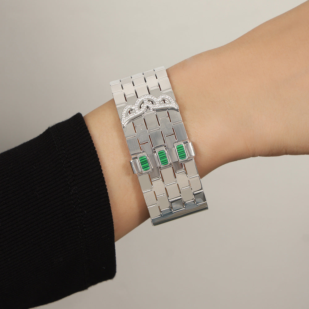 B廠【Z331】韓版時尚個性手錶鍊手環女復古鈦鋼面具鑲鑽不掉色金色手鐲飾品 24.03-1