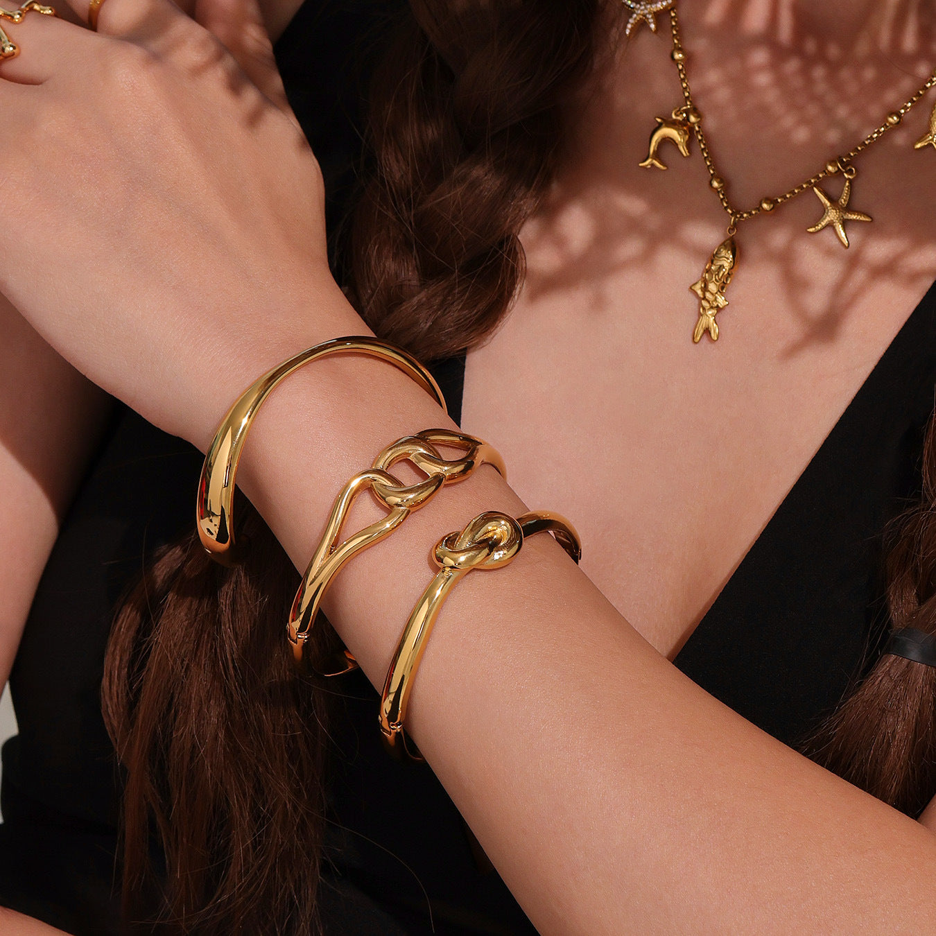 B廠【Z473】不鏽鋼幾何扭結卡扣手鐲鍍18k真金雙環百搭Z字造型個性手鐲 25.07-4