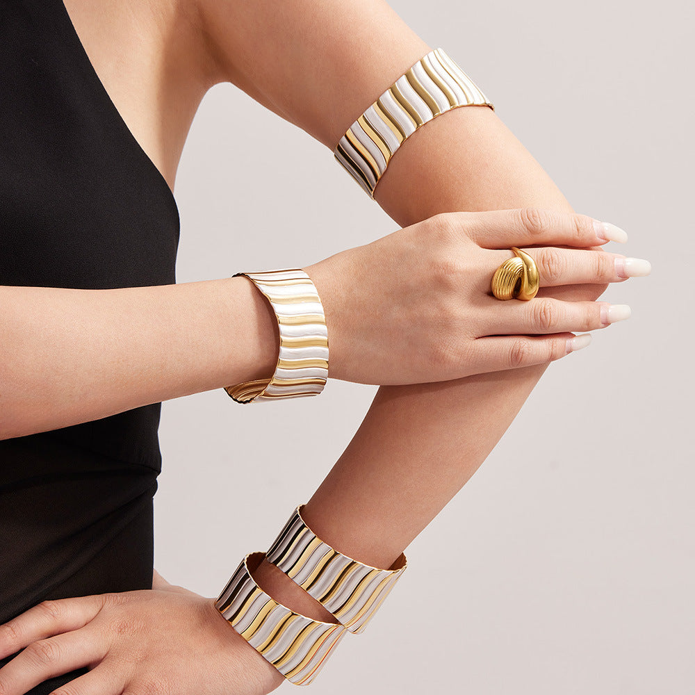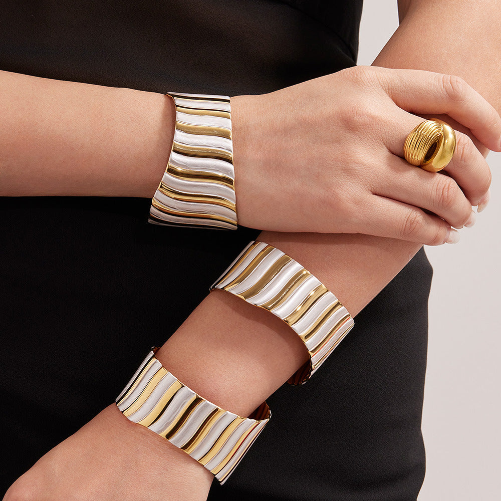 B廠【Z479】ins歐美新品個性誇張不鏽鋼開口手鐲不規則波浪紋舒適手鐲 25.08-3